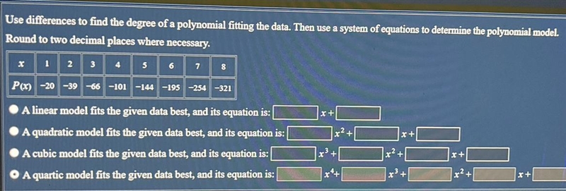 Therefore, a quadratic model fits the given data best, and its equation is: