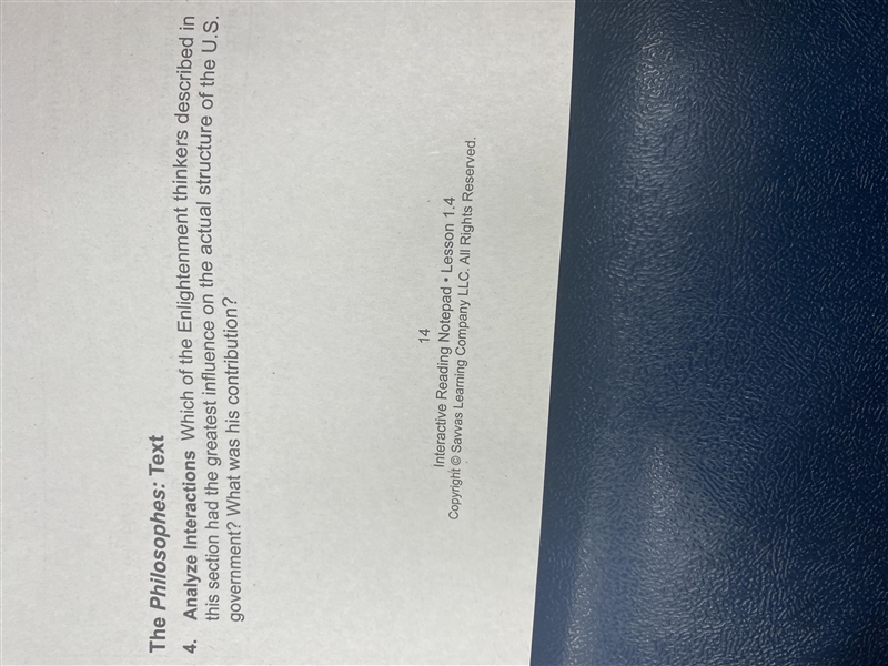 Which of the Enlightenment thinkers described in this section had the greatest influence on the actual structure of the U.S. govemment? What was his contribution?