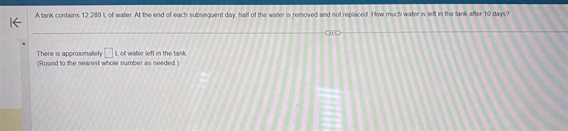 That's the 10th time that half the water remaining was taken out. So the answer is that 12 liters are left.