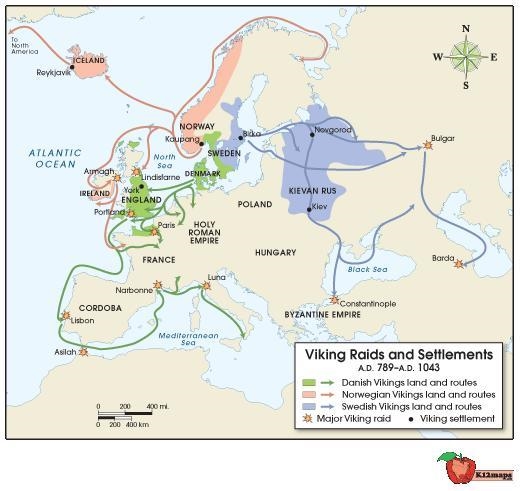 Explanation:As you can see the vikings were making their routes everywhere and had some territory in europe but the mass of the territory would make me say its a threat