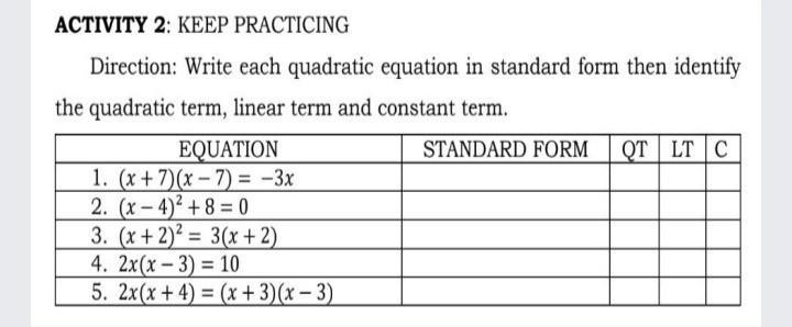 - Rearrange the terms so that all the terms are on one side of the equation, ensuring that the coefficient of the highest-degree term (x²) is positive and is typically an integer.