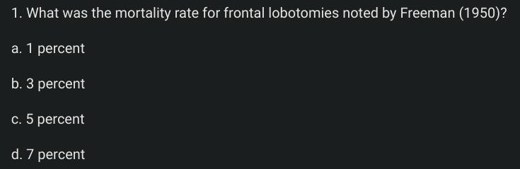 What was the mortality rate for frontal lobotomies noted by Freeman (1950)?