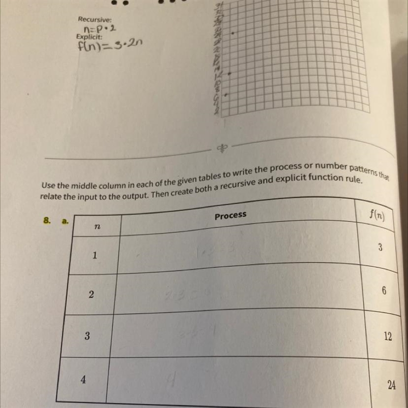 the recursive function rule for the given number pattern is f(n) = 3 * f(n-1), with an initial value of f(1) = 3. The explicit function rule is f(n) = 3n, with an initial value of f(1) = 3.