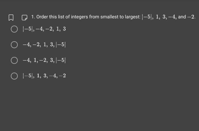 |-5| is last because it is a absolute value meaning -5 turns into a positive 5 making it the largest number