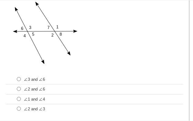 Alternate would mean different sides of the line and these are exterior, so that mean on the outside. So this would be angles 1 and 4.