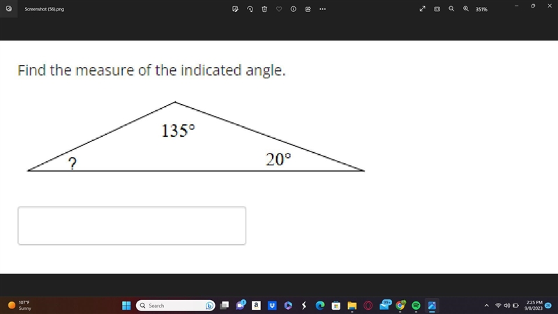 all the angels need to add to 180. add 135 and 20 thats 155 then do 180 minus 155 so 25 is your answer