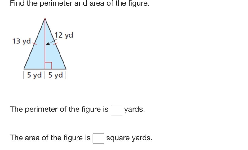 Now the perimeter, it shows that the other two sides aside from the base are equal, so you would add 13+13+10 which gives you 36 for the perimeter