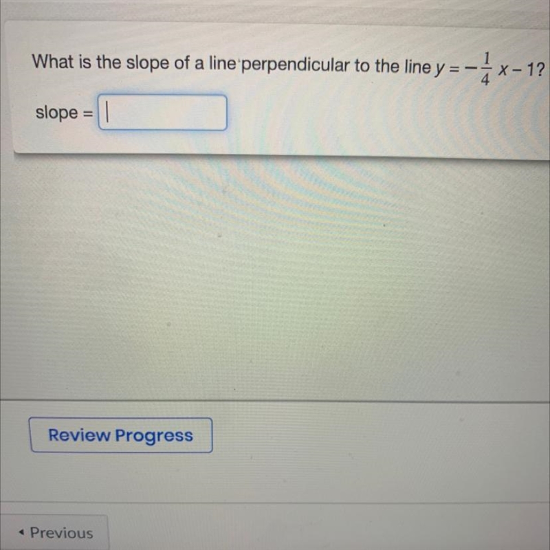 The slope of the line given is - 1/4. The opposite reciprocal of that would be 4.