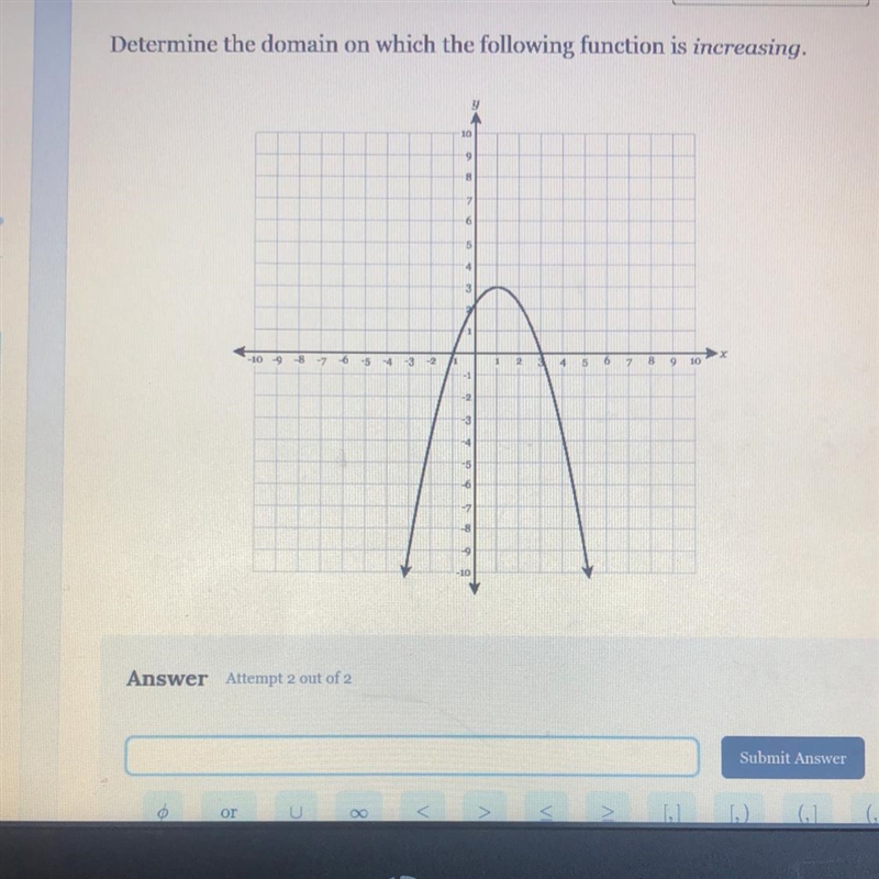 the left side of the graph is increasing up until x=1. So the domain is coming in from -infinity to 1, not including one meaning a parenthesis.
