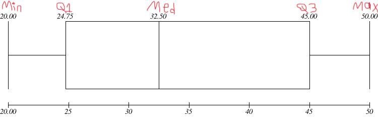 I attached a picture of a boxplot that represents the data and I'll use this explanation to explain the five parts of a boxplot, which includes: