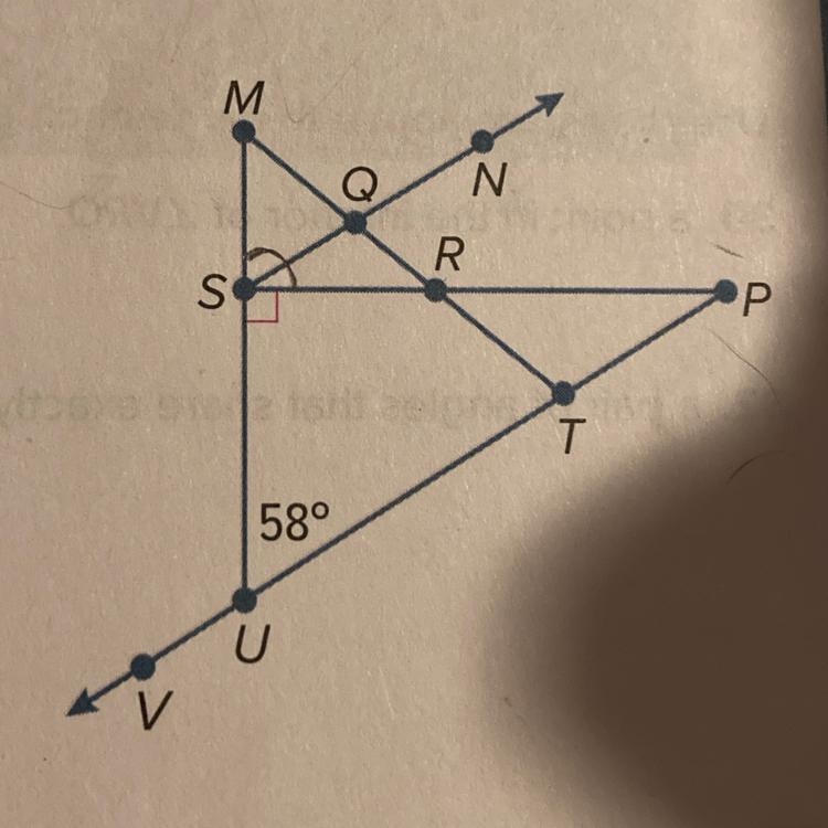 That being said, 2 (pairs?) of vertical angles would be <QRS & <PRT as well as angles <SQR and <MQN.