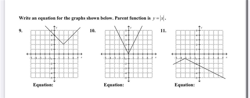 9. Shift RIGHT 2 units : y = | x -2|