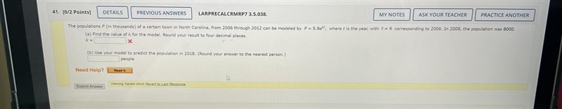If the population was 8000 in 2008, then P = 8 when t = 8.