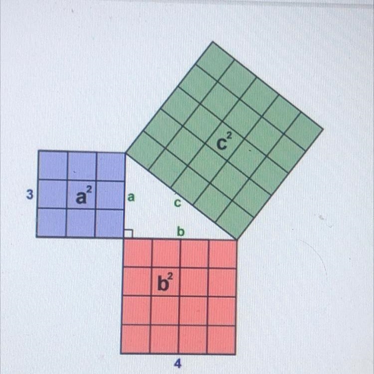 Step-by-step explanation: In the example above, the legs of the right triangle are 3 and 4 units long, and the hypotenuse is 5 units long. So the Pythagorean Theorem, a² + b² = c², tells us that 3² + 4² = 5² , or 9 + 16 = 25.