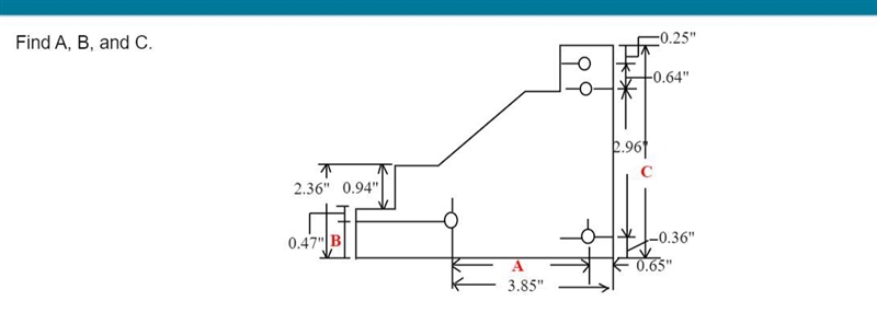 B = 2.36" - 0.47" - 0.94" = 0.95"