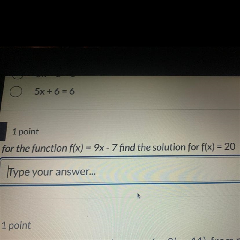 For the function f(x) = 9x - 7 find the solution for f(x) =20