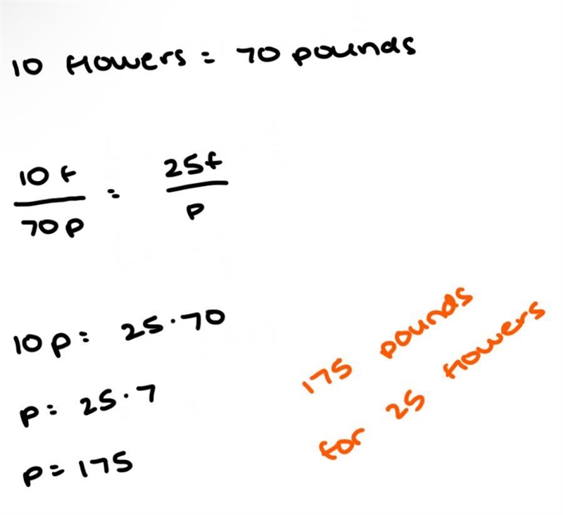 Flowers cost 70 pounds for 10. How much would I have to pay for 25 flowers?