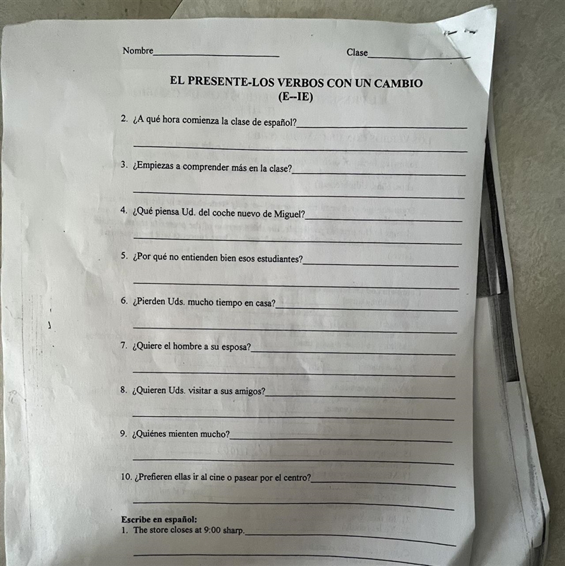 2. La clase de español comienza a las __ horas. (The Spanish class starts at __ o'clock.)