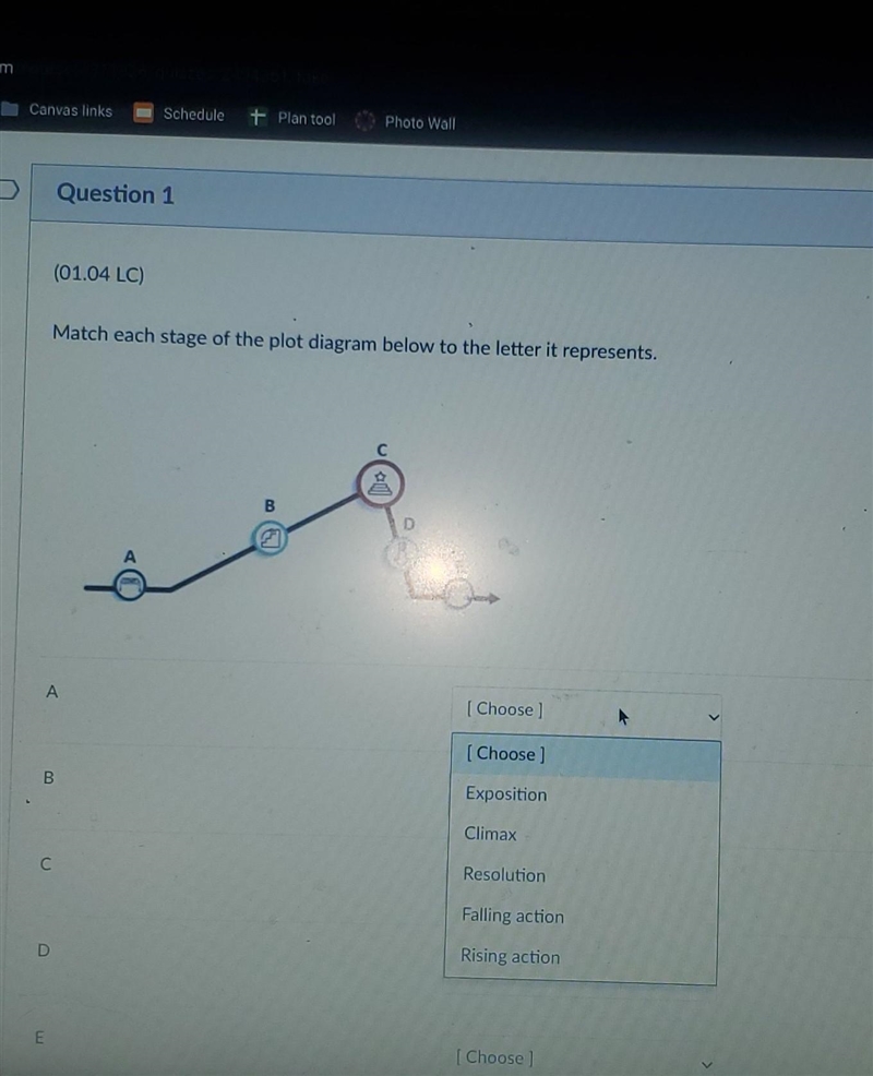 These stages represent the typical structure of a plot in a story or narrative. The exposition is the beginning of the story where characters, setting, and background information are introduced. The rising action builds suspense and develops the plot leading to the climax, which is the turning point or most intense moment in the story. The falling action follows the climax and begins to resolve the conflicts, leading to the resolution or conclusion of the story.