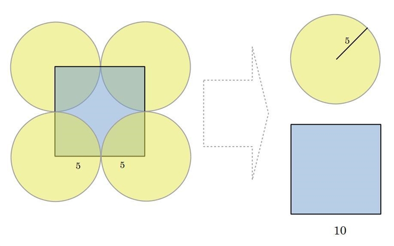 so let's notice, since the garden is using four quarters, well, four quarters of anything is a whole anything, so if we add them all together that'd give us a full circle whose radius is 5 yards.
