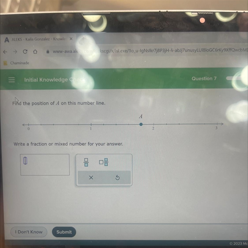 Between 1 and 2 are four ticks. translate those into fractions () A is on the fourth tick, with is .