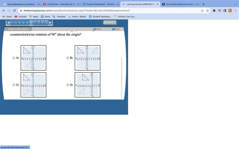 To visualize the final image of the triangle after both transformations, you can apply these transformations to any given right triangle in quadrant II. so i think a?