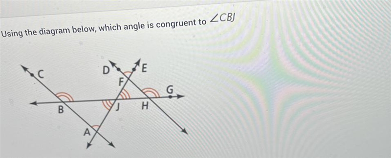 ∠ CBJ and ∠ DHG are both denoted with 2 arcs and are congruent
