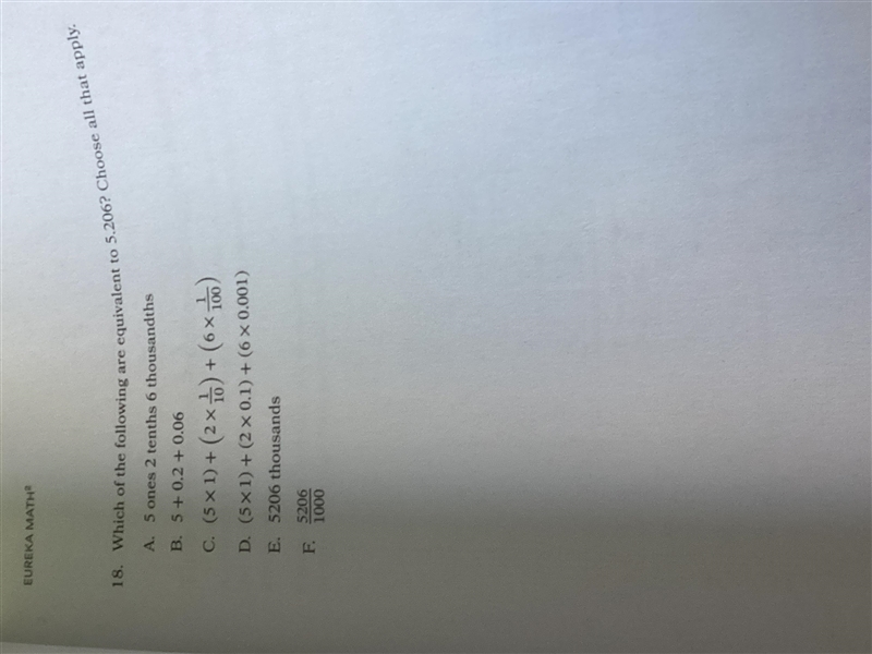 F. Put it in your calculator and see. 5.206, right? So F is correct. (And this is really the same discussion I had above, because when you put 5206 over 1000, now you're talking about fractions called thousandths.)