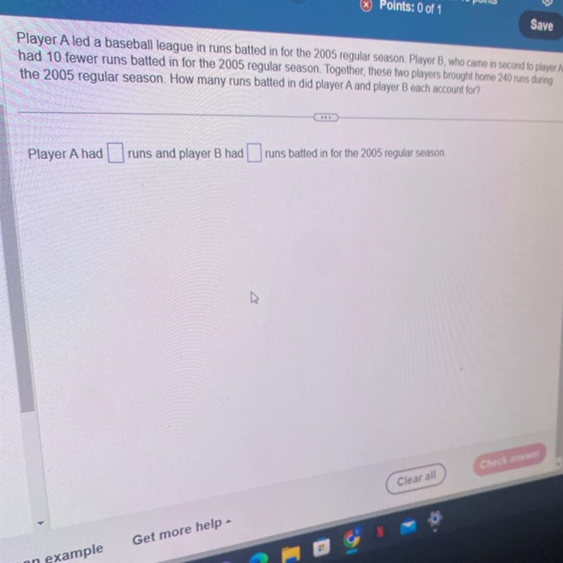 Player A led a baseball league in runs batted in for the 2005 regular season. Player B, who came in second to player A,