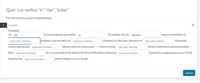 Can anyone who speaks Spanish give me answers to this please. ir, dar, estar