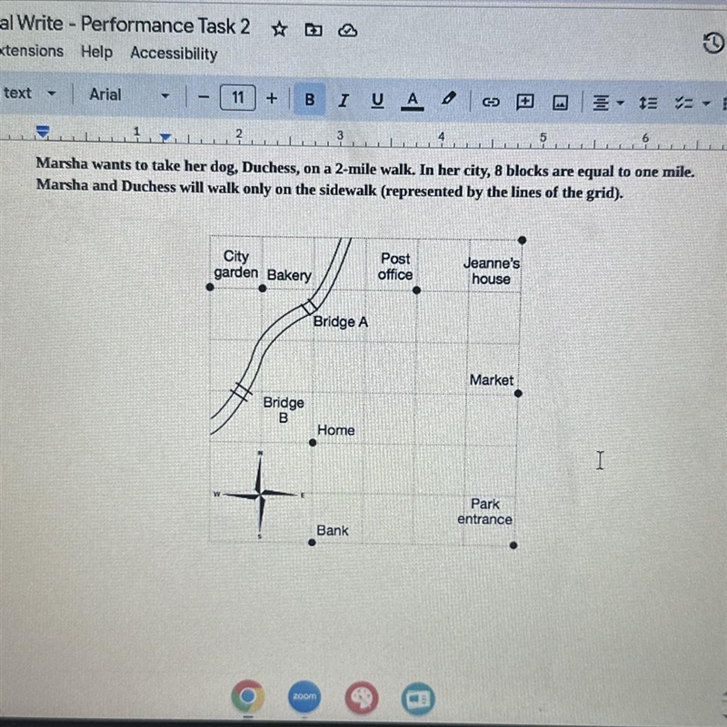 PLEASE HELP !! Can Marsha and Duchess walk by the post office, the market, the bank, and return home on this 2-mile walk? Why or why not? Respond in complete sentences, not only with calculations. Write