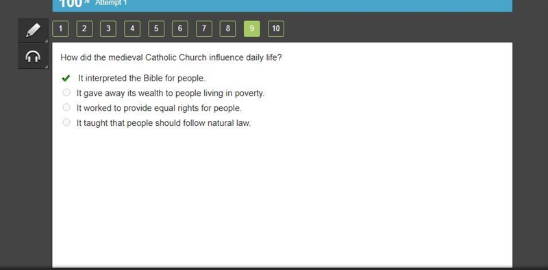 Hello. Your answer would be A. It interpreted the Bible for people.