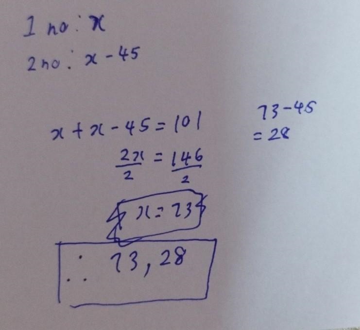 The sum of two numbers is 101. the difference between them is 45. what are the two numbers