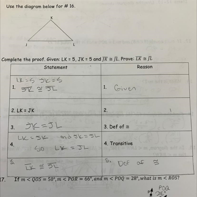 LK and JK both measure 5. They are equal as they have the same magnitude.