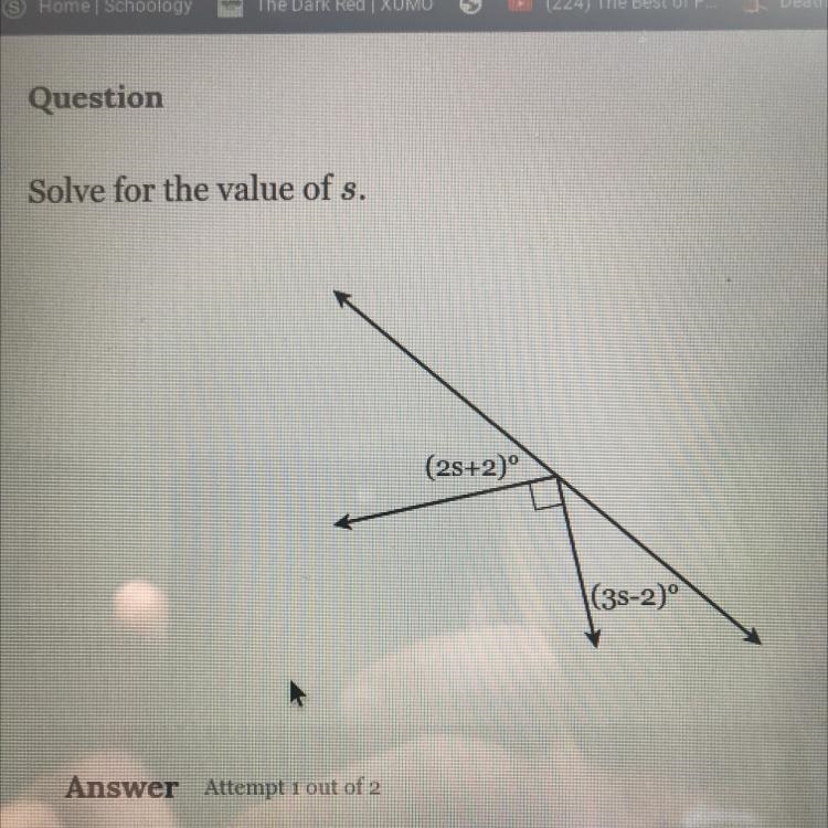 the 3 angles (2s + 2)° , 90° , (3s - 2)° lie on a straight line and sum to 180°
