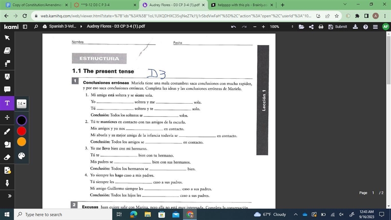 3. Tu te llevas bien con tu hermano.