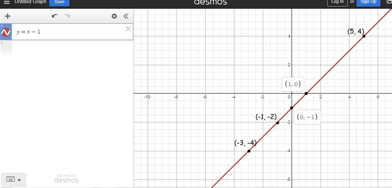 Now we shall plot (1, 0), (-3, -4), (0, -1), (-1, -2) and (5, 4) in the graph.