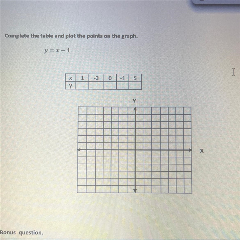 Here the first row of the table contains the x-values. We will put the values of x one by one from this row into y = x - 1 to find the corresponding values of y. Then we will put these values on the second row of the table.