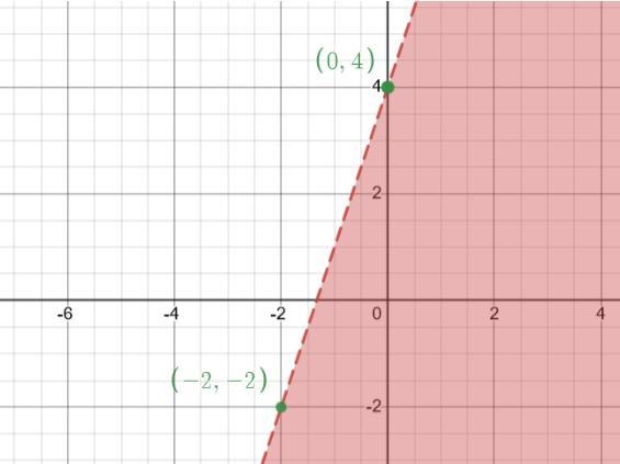 The dashed boundary line is shown as passing through the point (-2, -2) and the y-intercept (0, 4). Its slope is ...
