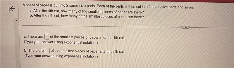 Every time you cut the piece of paper you double the amount of pieces of paper because you are splitting each one into two. i am not sure what nth means but whatever number it means you multiply by two.