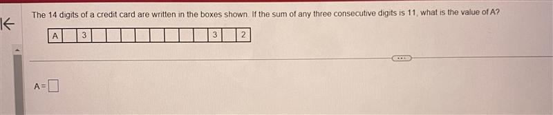 The value of digit A is 2. It is hard to explain but I will try my best :) Look at the other side it starts with ends with two and since the sum of every consecutive three digits equals 11 then it needs to be then the start of the series of number has to be the same as the end. But it should be this if you fill in all the boxes.