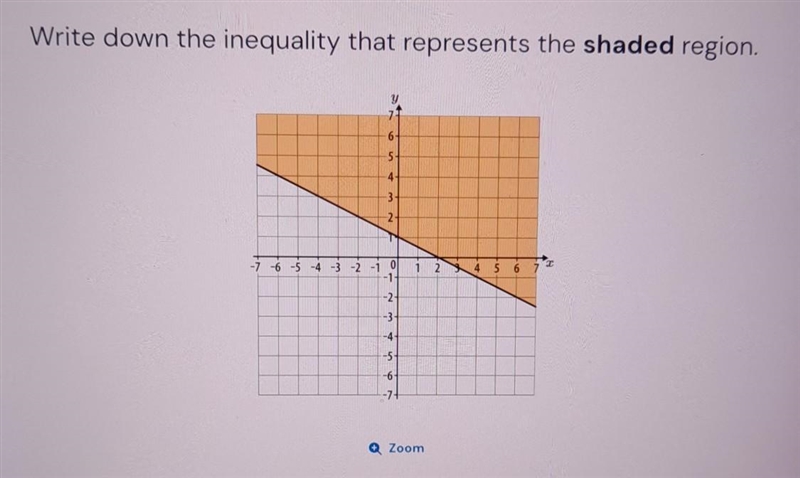 Step-by-step explanation: The line is equal to y=x+1. I tested the point (2,2) to see where the sign should go. 2?-1+1 2?0 Since 2 is greater than 0 and the line is solid, y has to be greater than or equal to the equation.