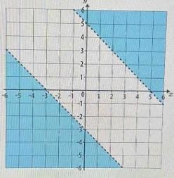 For the left dotted line, y = -x - 3, derived from c = -3 and m = -1. The right dotted line, y = -x + 5, establishes the boundary for x + y < 5 (a = 5).