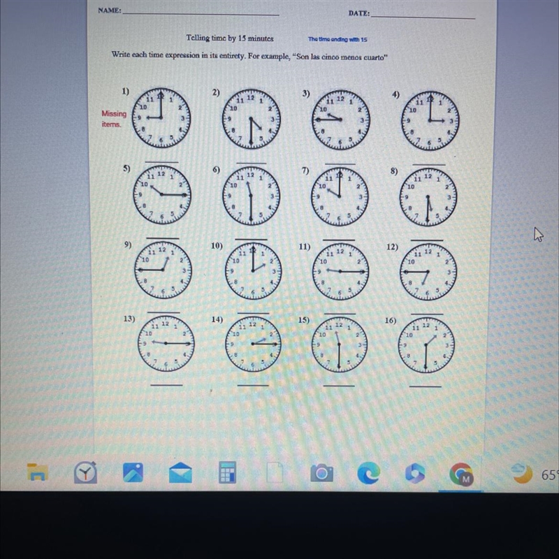 12) son quince para las siete. Es un cuarto para las siete. Son las seis y cuarenta y cinco.