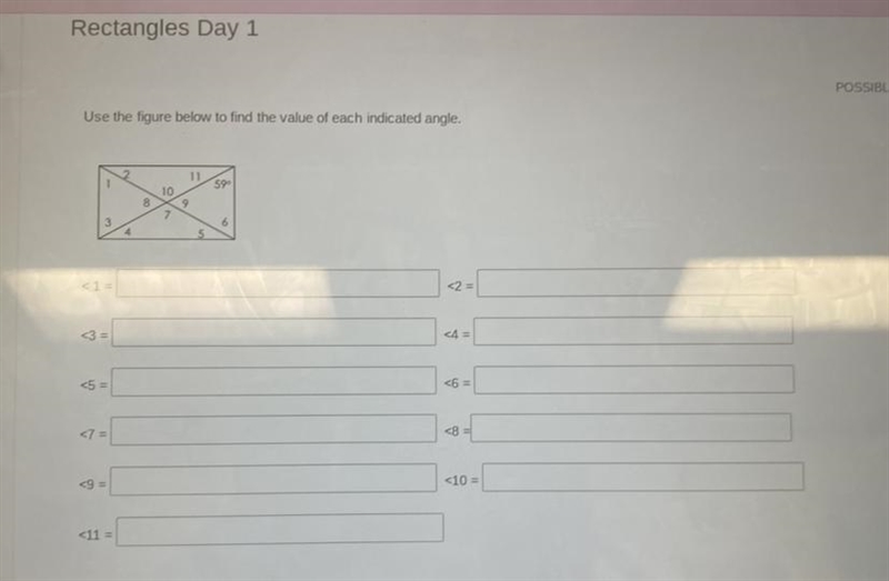 You want the measures of the angles created by the two diagonals in a rectangle, if the larger of one of the corner angles is 59°.