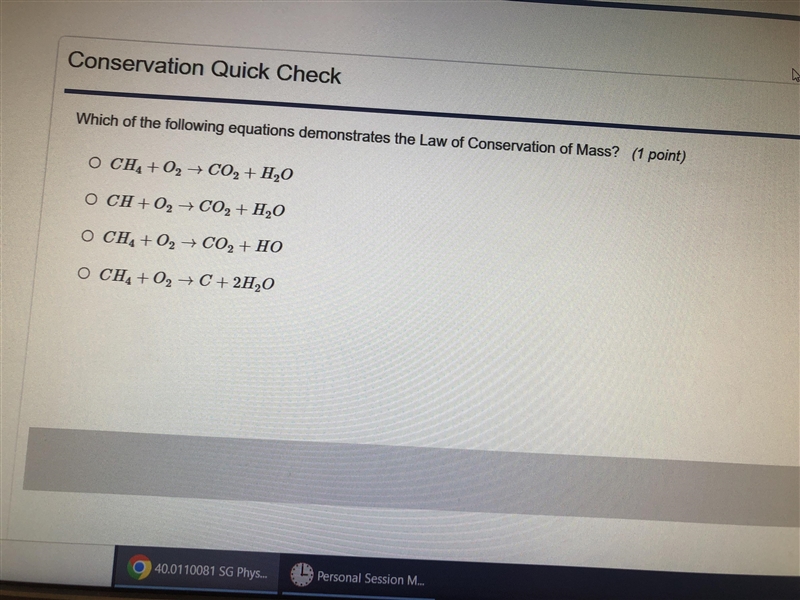 Which of the following equations demostrates the law of conservation of mass A. Ch-example-1