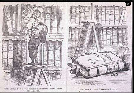 "Second panel shows man flat on his back on the floor with book, titled Constitution of U.S."