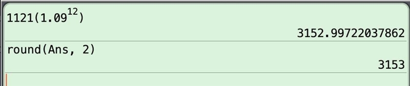 A = 1121(1 +0.09)^12 ≈ 3153.00