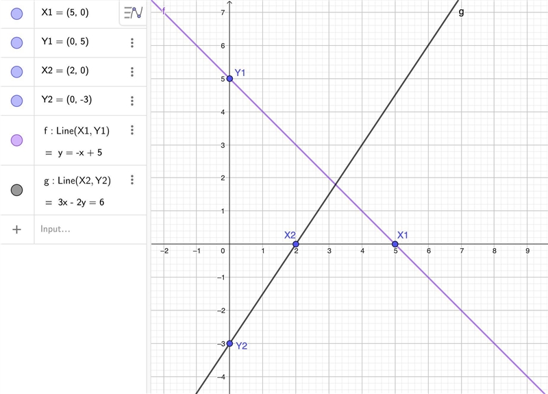 The point where the two lines intersect is (3.2, 1.8).