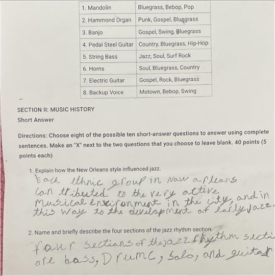 B. Instructions: Which style of music on the right typically uses the instrument on the left? Circle your choice. 24 points (3 points each)